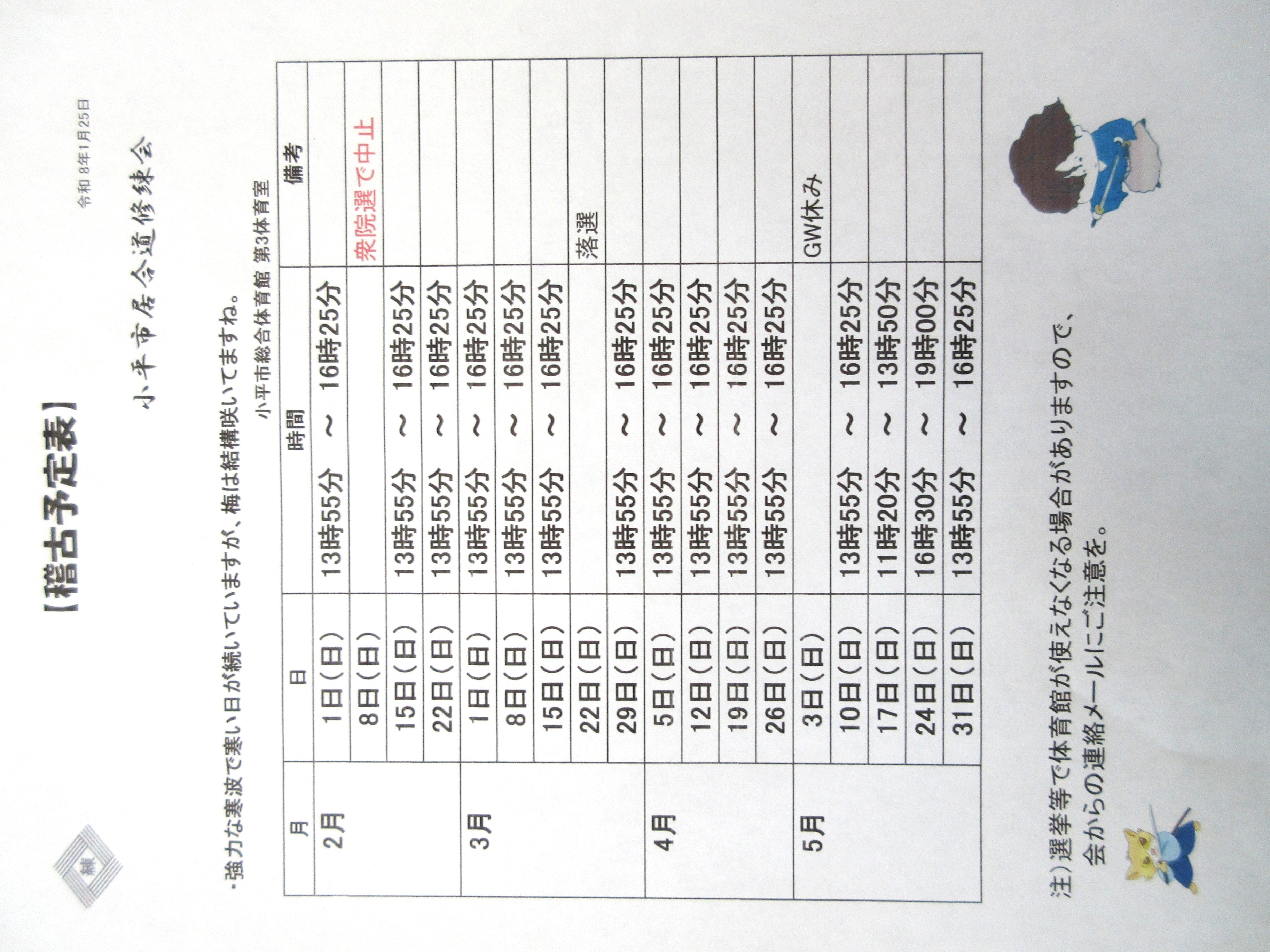 ■ 市民総合体育館 第3体育室(西武線/鷹の台駅近く・徒歩約3分) 住所 :東京都小平市津田町1-1-1 TEL:042-343-1611 体育課(市民総合体育館内 ■ 稽古時間: 添付スケジュール表参照クリックして拡大して下さい